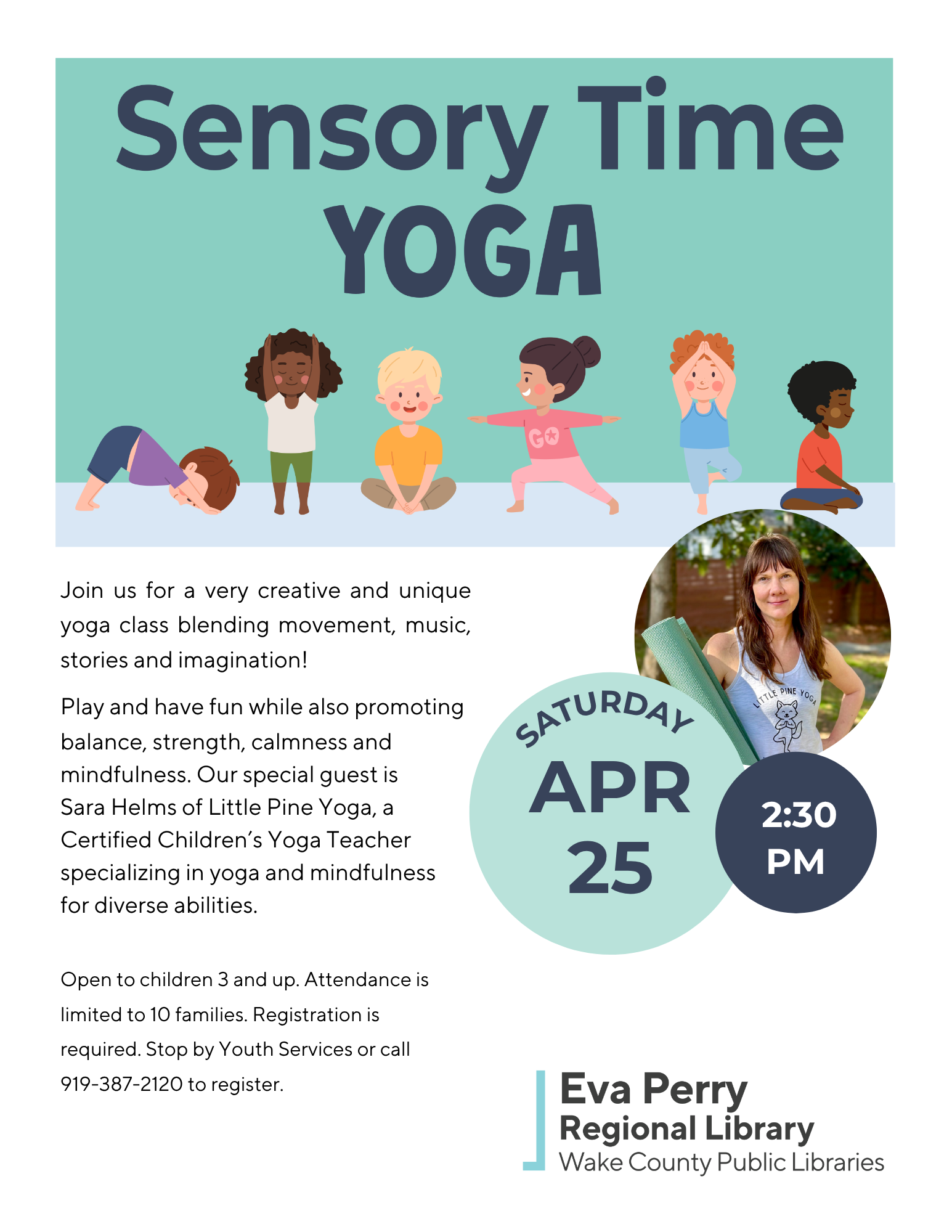 To register, stop by the Eva Perry library or call (919) 387-2120